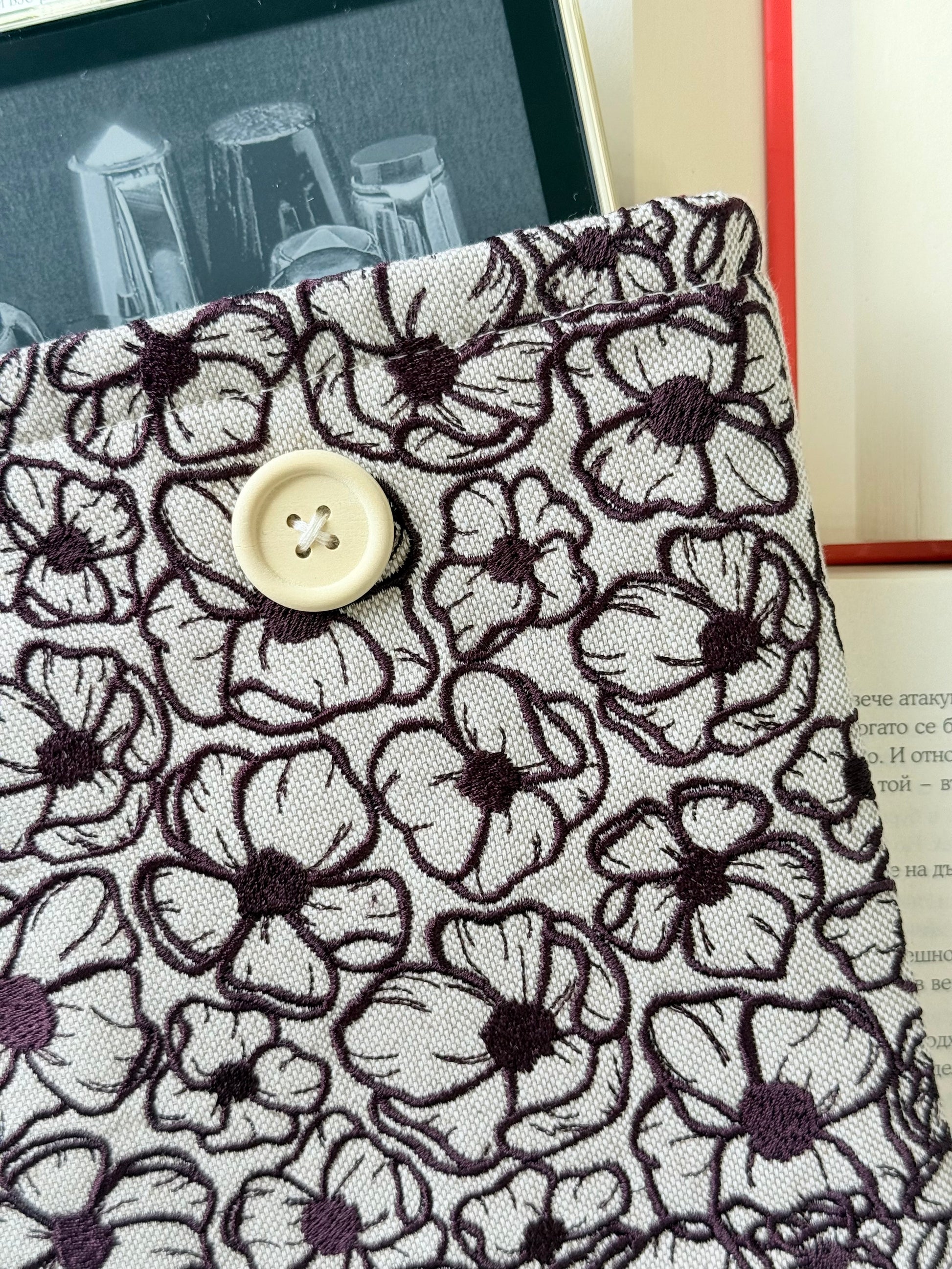 Perfect for carrying in your bag or gifting to a book lover, this sleeve combines durability with artistry. Its natural linen fabric and detailed embroidery make it both functional and beautiful—a thoughtful companion for your reading journeys.