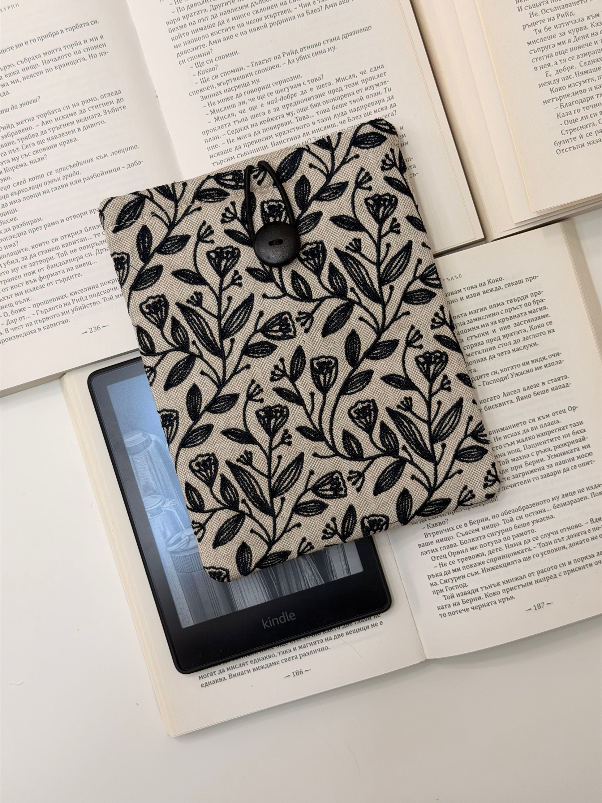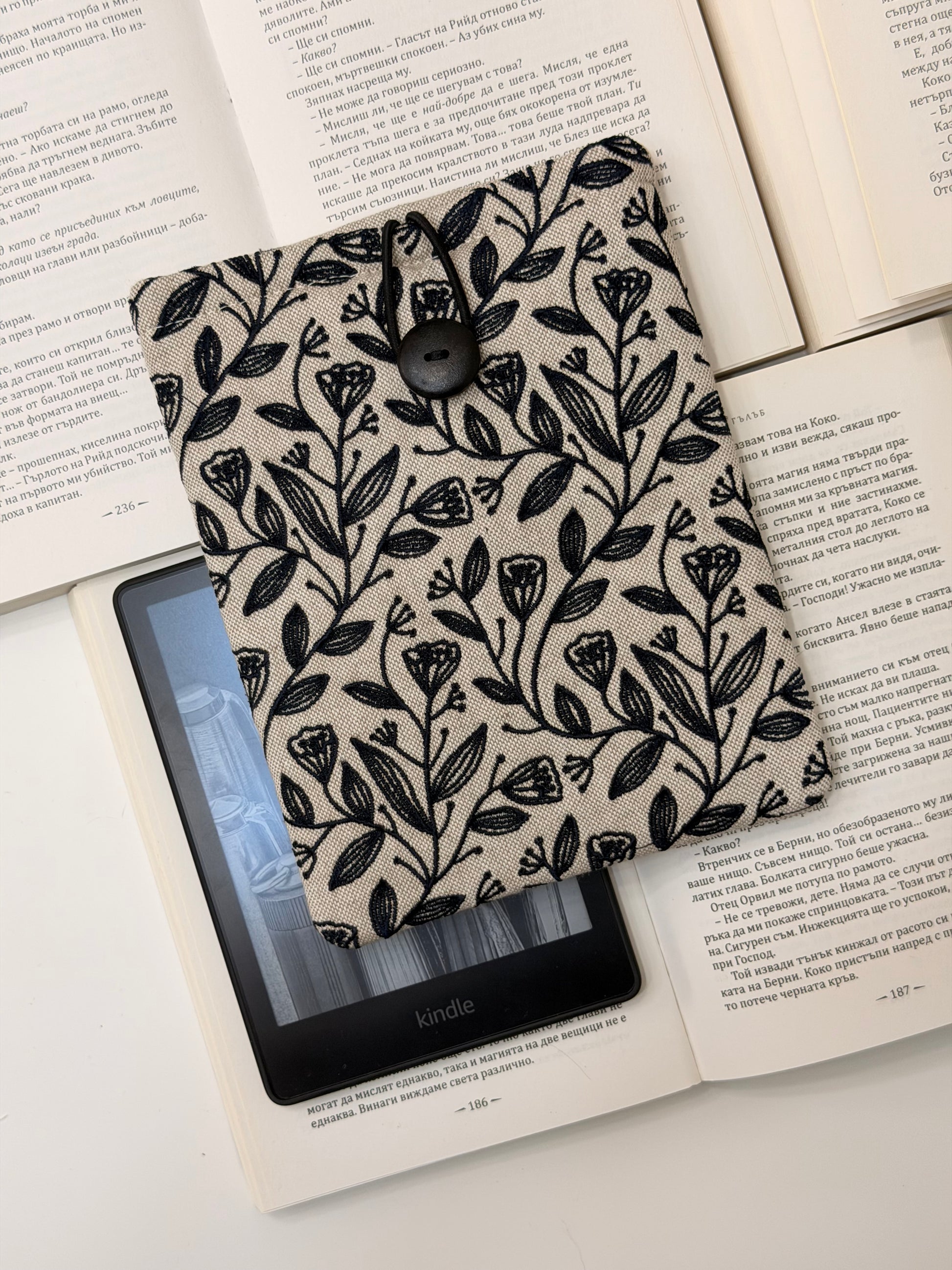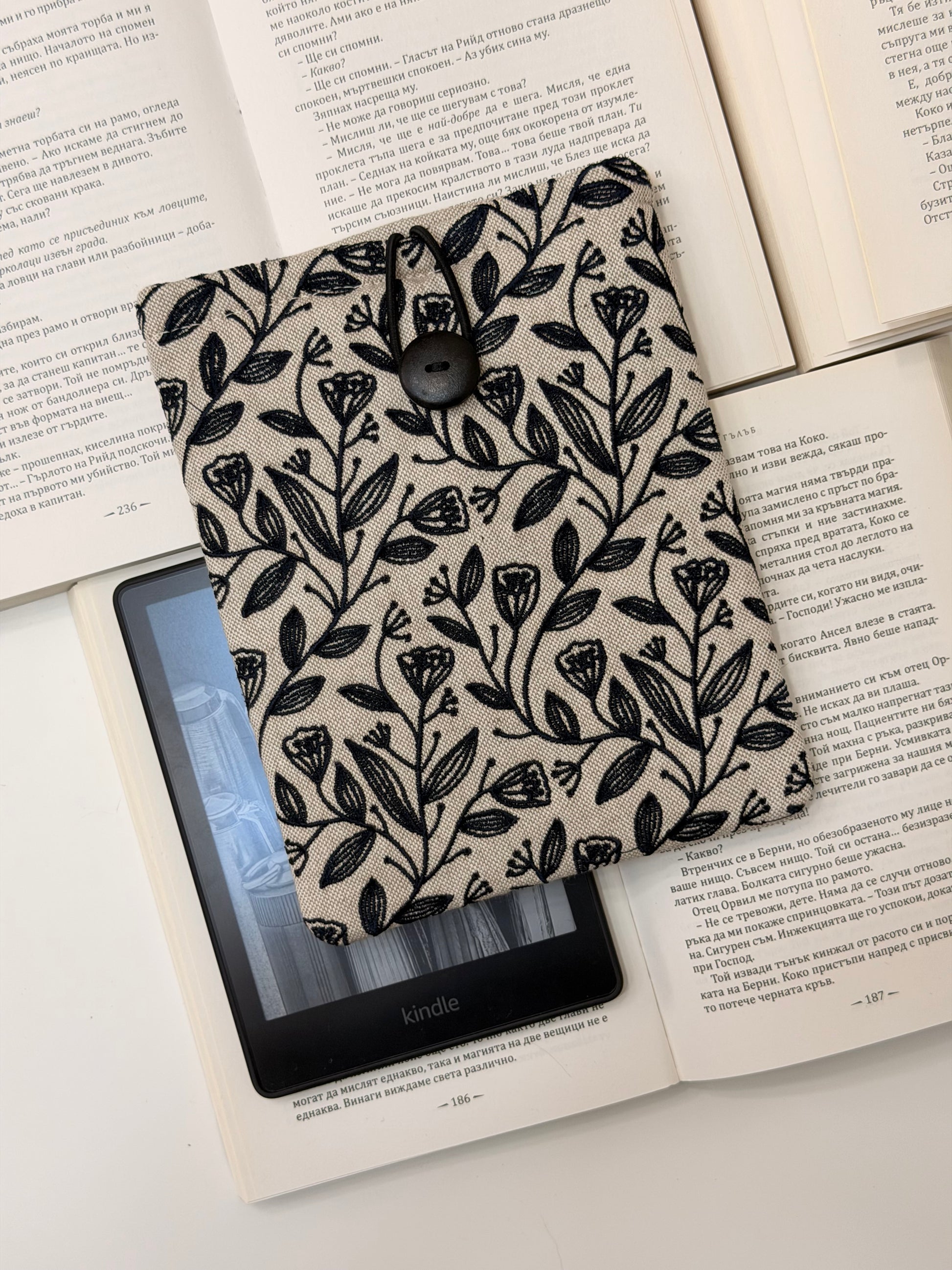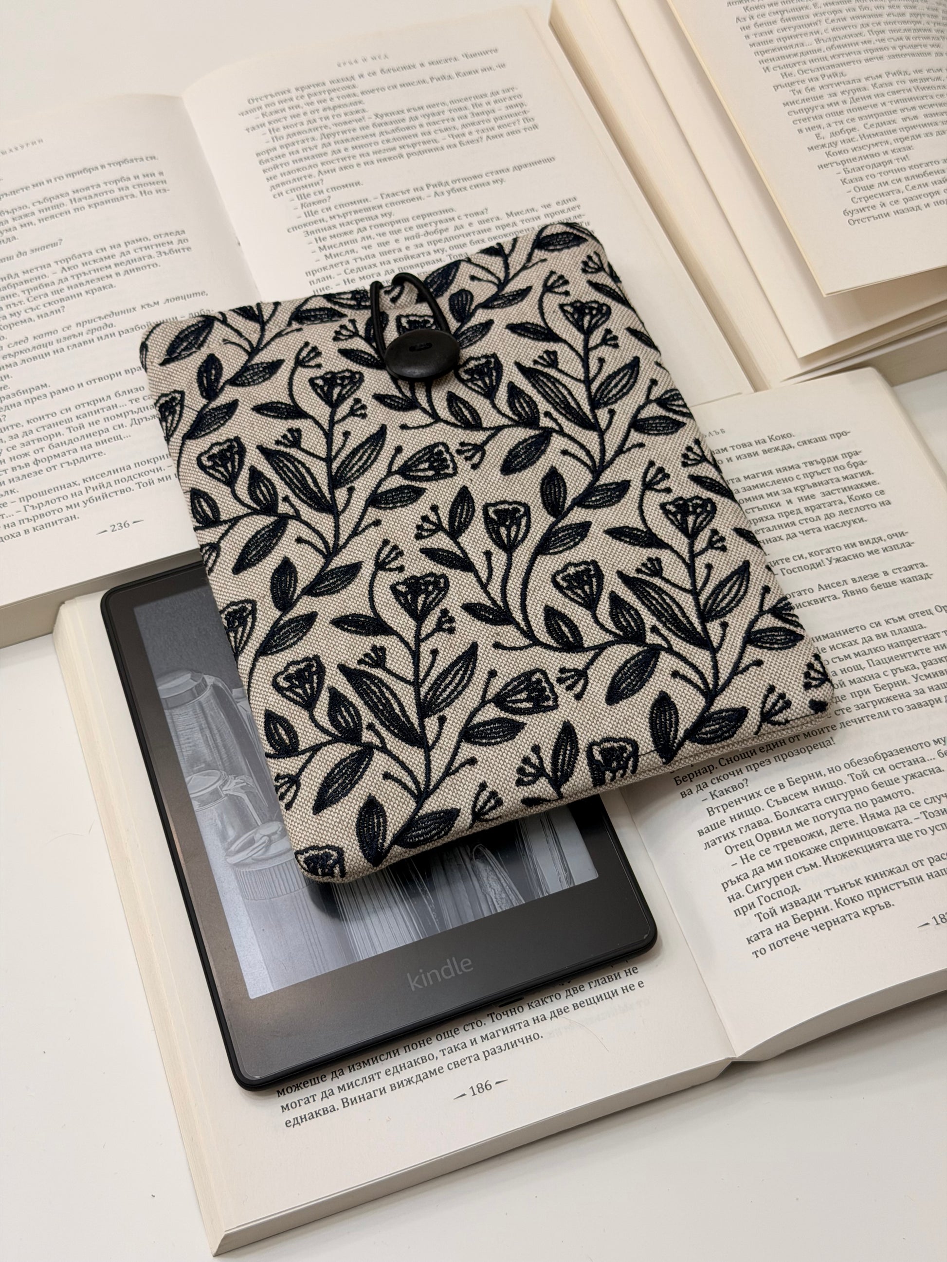Handmade embroidered flower Kindle sleeve — soft, padded, and elegant protection for your e-reader, crafted by Lullaby Crafts World.